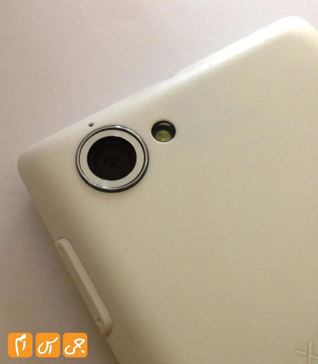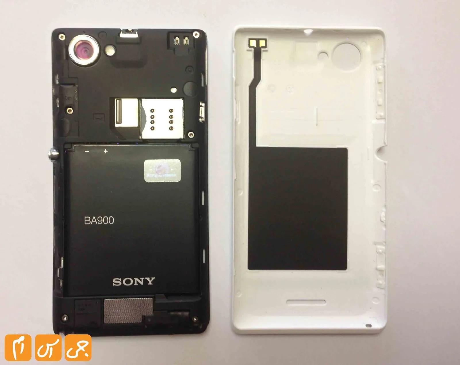 در پشت گوشی میکروفون دوم برای حذف صداهای اضافی در حین مکالمه، دوربین اصلی گوشی با کیفیت 8 مگاپیکسل، یک فلاش LED، آرم Xperia  و در پایین ترین قسمت بلندگوی گوشی قرار دارند.