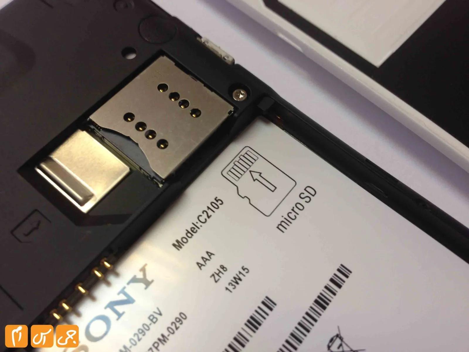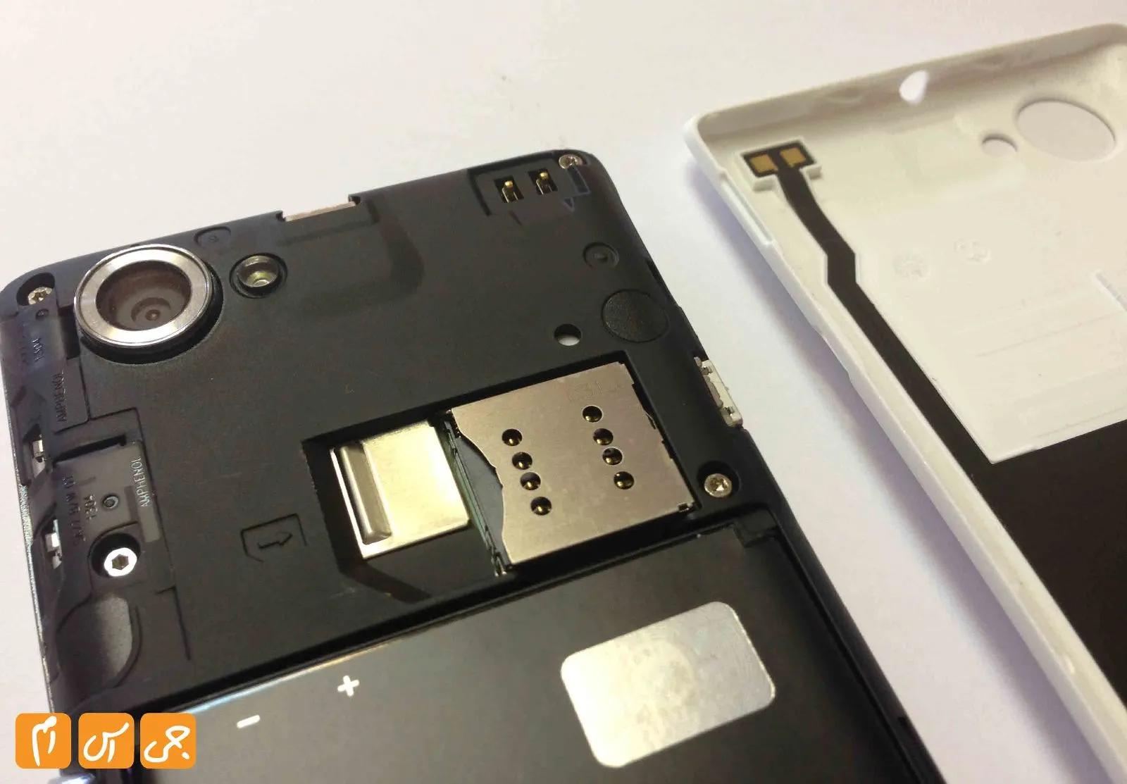 با باز کردن درب پشتی گوشی شما به باتری دسترسی خواهید داشت، همچنین درگاه کارت حافظه خارجی و سیم کارت نیز در پشت این قاب قرار دارند. برای وارد و یا خارج کردن کارت حافظه خارجی محبور به درآوردن باتری از جای خود هستید.