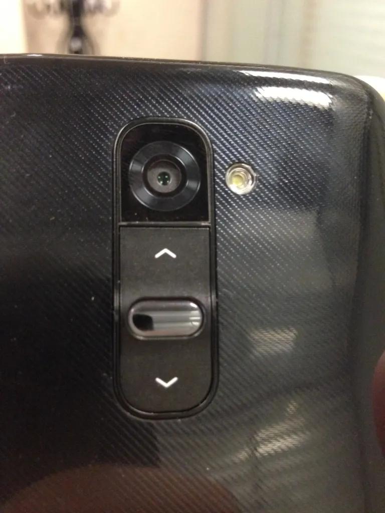 همان طور که گفتیم، جی 2 یک گوشی بی‌دکمه است. نه اینکه هیچ دکمه‌ای بر روی آن قرار نداشته باشد اما اگر گوشی را روی میز بگذارید، تقریبا به هیچ دکمه‌ای دسترسی ندارید. همه چیز پشت گوشی و نزدیک لنز دوربین تعبیه شده است. دکمه پاور و همچنین دکمه کم و زیاد کردن صدا در جای غیر متعارفی قرار گرفته‌اند. اینکه هیچ دکمه‌ای در دسترس نیست، شاید در اوایل کار حس ناامنی به دست دهد. شما برای روشن و خاموش کردن صفحه نمایش یا کار با گوشی، هیچ دکمه‌ای در دسترس ندارید. تنها راه این است که دو بار روی صفحه نمایش خاموش ضربه بزنید، تا گوشی در را باز کند. اگر هم اصرار دارید از دکمه‌ها استفاده کنید، حتما باید زحمت بکشید و گوشی را از روی میز بردارید زیرا همه چیز آن زیر است.