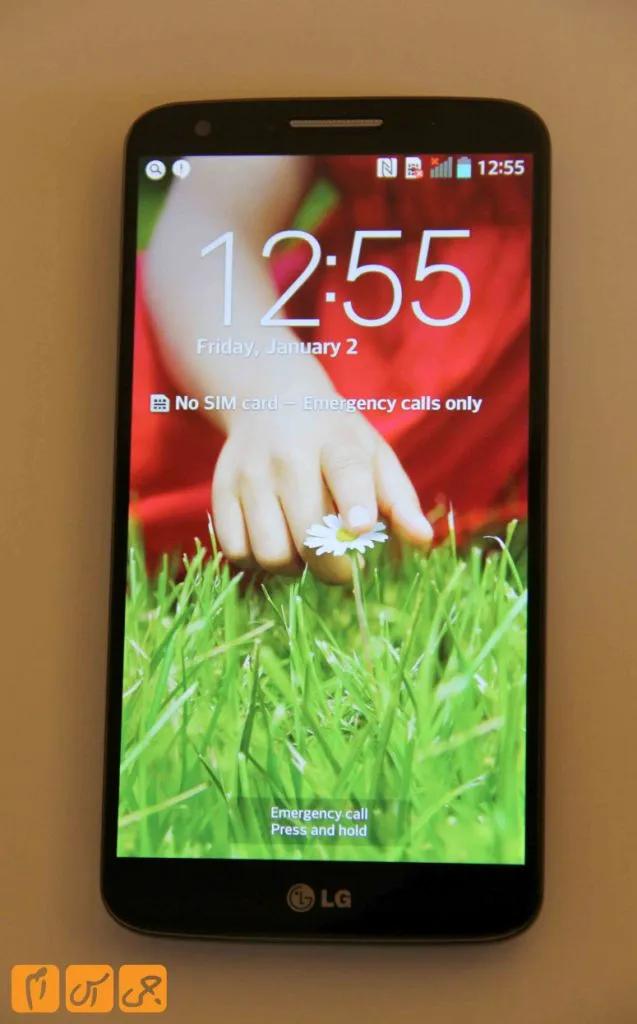 در حالت خاموش صفحه نمایش با گوشی یکی است و به گوشی شکل زیبایی میبخشد اما در وقتی که صفحه نمایش را با دو بار ضربه زدن بر روی صفحه نمایش و یا با فشار دادن دکمه پاور در پشت گوشی روشن می کنید تازه متوجه خواهید شد که کیفیت صفحه نمایش چقدر بالا است. این صفحه نمایش اندازهای 5.2 اینچی و کیفیتی فول اچ دی دارد که تراکم پیکسلی آن 423 پیکسل در اینچ است. جنس این صفحه نمایش از نوع پنلهای IPS است. در این نوع صفحه نمایشها اگرچه روشنایی بیشتر از صفحه نمایشهای آمولد نیست اما رنگها در آن بسیار بهتر نشان داده میشوند. این صفحه نمایش زاویه دید زیادی هم دارد و ال جی در این زمینه و خوانایی در زیر نور خورسید بسیا خوب عمل کرده است، اما ما صفحه نمایش های آمولد را بیشتر دوست داریم. زیرا روشنایی بالای آنها باعث میشوند که تماشای این صفحه نمایش بسیار دلپذیرتر باشد. در زیر میتوانید مقایسهای بین صفحه نمایش این گوشی با دو گوشی نوت 3 و اس 4 و آیفون 5 داشته باشید.