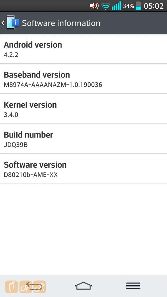 اندروید این گوشی نسخه 4.2.2 است و توسط رابط کاربری ال جی تزیین شده است. این سوال برای تمام اهل فن پیش آمده که ال جی چرا از نسخه اندروید 4.3 در گوشی پرچمدار خود که قرار است رقیبی برای بزرگان بازار باشد استفاده نکرده است. عقیده ما این است که رابط کاربری که ال جی استفاده میکند در برابر رابط کاربری گوشیهایی مانند HTC One و Galaxy S4 بسیار ساده تر است و کمی کاربر را گمراه می کند.