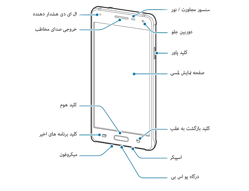 در قسمت جلویی گوشی علاوه بر صفحهنمایش 4.7 اینچی که با پوشش Gorilla Glass محافظتشده است کلید Home که مانند S5 مجهز به سنسور اثرانگشت است و دو کلید لمسی همیشگی سامسونگ مشاهده میشود.