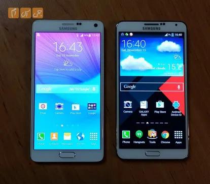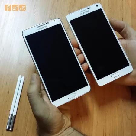 یکی از انتقادهای متداول در مورد گوشیهای سامسونگ این بود که گوشیهای این شرکت حس یک گوشی گرانقیمت را به کاربر انتقال نمیدهند، درنتیجه سامسونگ تصمیم گرفت این نیاز کاربران را با تولید گوشیهایی مانند Galaxy Alpha و Galaxy Note 4 که دارای فریم آلومینیومی هستند برطرف سازد. Note 3 دارای فریم کروم رنگ پلاستیکی است Note 4 قابی از آلیاژ آلومینیوم دارد و هنگامیکه آن را در دست میگیرید، کاملا متوجه استحکام بالای گوشی خواهید شد. همین موضوع باعث شده تا وزن Note4 حدود 8 گرم بیشتر از Note 3 باشد. پوشش پلاستیکی قاب پشتی نیز کمی تغییر پیداکرده است و اگر دقیقتر بخواهیم بگوییم تنها طرح آن کمی عوضشده است. تفاوت جزئی دیگر انحنایی است که در لبه پایین Note4 دیده میشود که جلوه زیباتری به آن داده است. از دیگر تغییرات جابجا شدن اسپیکر از لبه پایینی به قاب پشتی است.