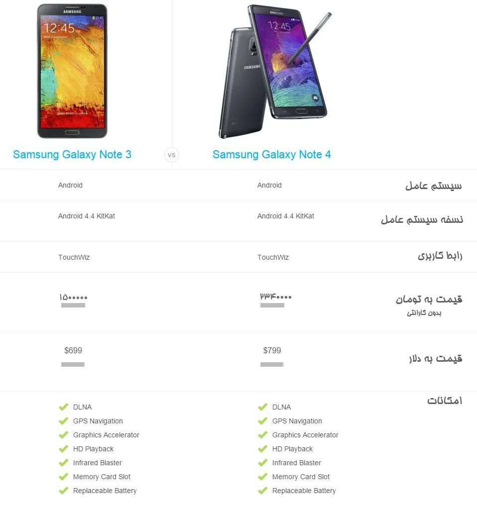 ویژگیهای جدید Note4 و البته فریم فلزی آن باعث میشود تا وسوسه شوید گوشی خود را تعویض کنید اما Note3 هم یک گوشی پرقدرت در بازار محسوب میشود و نباید گفت در مقایسه با Note4 یک گوشی منسوخشده است. صفحهنمایش QHD و سنسورهای اضافی باعث شده تا قیمت گوشی بالاتر برود پسنیاز است قبل از خرید به این نکته توجه داشته باشید که این ویژگیهای اضافی، بهطور روزمره مورداستفاده شما قرار میگیرید یا خیر.