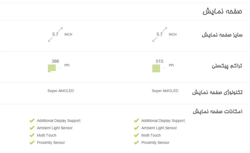 همانطور که در بررسی Note4 گفته شد هر دوگوشی دارای صفحهنمایش 5.7 اینچی هستند اما Note4 اولین صفحهنمایش AMOLED را دارد که کیفیت آن QHD است. تراکم پیکسلی این صفحهنمایش برابر با 515 پیکسل بر اینچ است که حدود 78 درصد بیشتر از تراکم پیکسلی صفحهنمایش Note3 است. صفحهنمایش Note4 روشنایی بیشتری نسبت به صفحهنمایش Note 3 دارد. کیفیت QHD در نگاه اول و از فاصله نزدیک به چشم نمیآید اما هنگامیکه از فاصله دورتر (حدود 40 سانتیمتری) از چشم به این دو نگاه میکنید متوجه خواهید شد که وضوح صفحهنمایش Note3 پایینتر از وضوح صفحهنمایش Note4 است. این بدان معنا نیست که صفحهنمایش Note3 کیفیت پایین دارد و تنها در مقایسه با Note4 این صفحهنمایش وضوح پایینتری دارد.