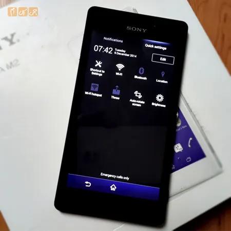 M2Aqua با سیستم عامل اندروید نسخه 4.4 یا کیت کت عرضه شده است با همان رابط کاربری که در M2 و Z2 دیده بودیم.این رابط کاربری برای گوشی‌های سونی بسیار ساده و خسته کننده است و سونی هنوز قصد ندارد این رابط کاربری را تغییر دهد. نوار ناتیفیکیشن دارای دو قسمت است. از قسمت Quick Settings می‌توانید دسترسی سریع به برخی امکانات گوشی داشته باشید و در قسمت Notification هم اعلانات و پیغام‌های رسیده به نمایش درمیاید. کلیدهای معروف گوشی‌های اندرویدی  ( Back، Home ، Multi tasking ) مانند گوشی‌های دیگر سونی در پایین صفحه نمایش قرار دارند و جزئی از صفحه نمایش هستند. با لمس کلید مولتی تسکینگ علاوه بر اطلاع از برنامه‌های در حال اجرا، نوار برنامه‌های کوچک مورد علاقه نیز مشاهده می‌شود این نوار شامل لیستی از برنامه‌هایی است که می‌خواهید به سرعت به آن‌ها دسترسی پیدا کنید.