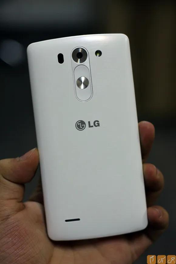 در سمت چپ دوربین نیز فوکوس لیزری دوربین را می بینیم که واقعا هم عملکرد خیلی خوبی دارد. وسط درب پشتی گوشی نیز برند ال جی قرار گرفته و در زیر آن بلندگوی اصلی گوشی قرار گرفته است.