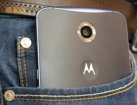 پشت گوشی یکی از زیباترین قسمت های آن است. نسخه ای که در دست ما قرار دارد نسخه آبی رنگ آن است. در نسخه سفید قاب پشتی خاکستری است و روی گوشی مانند نسخه آبی رنگ مشکی است. از نظر من نسخه آبی رنگ زیباتر است اما برخی از کارشناسان دیگر در عقیده دارند که رنگ خاکستری آن زیباتر است. در پشت گوشی دوربین به همراه فلاش دور آن در بالا، لوگوی موتورولا که در یک فرورفتگی قرار گرفته در وسط و در پایین کلمه NEXUS قرار گرفته اند. در ضمن میکروفون دوم نیز در داخل فلاش و کنار دوربین قرار گرفته است. در پایین کلمه نکسوس میکروفون اصلی گوشی قرار دارد.