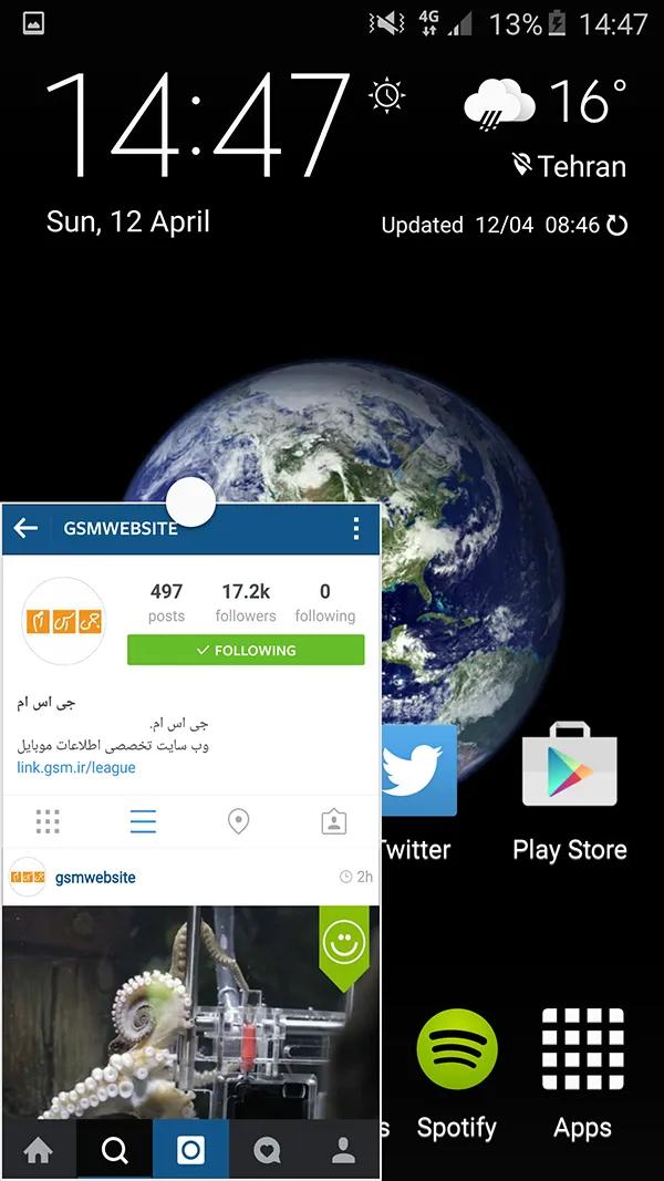 یک ویژگی دیگر تاچ ویز این است که می توانید پنجره یک اپلیکیشن را کوچک کرده و آن را به هر جایی که می خواهید جا به جا کنید. یک مزیت این کار، کار کردن آسان با آن اپلیکیشن با یک دست است. برای این کار کافی است در هر اپلیکیشنی هستید، از گوشه بالا سمت راست، انگشت خود را به پایین بکشید.