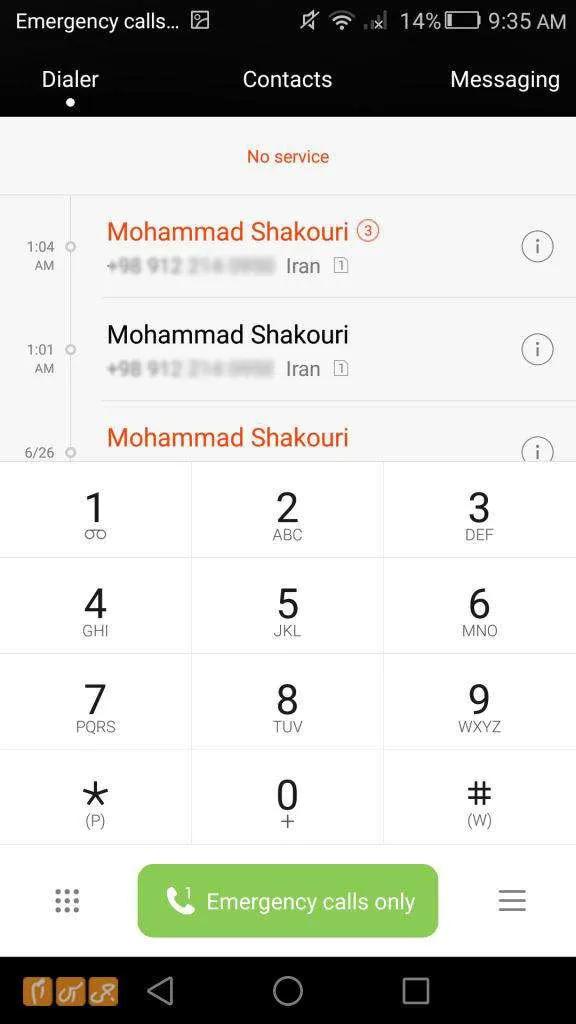 خلاقیت هوآوی در این قسمت به‌خوبی خود را نشان می‌دهد. زمانی که روی آیکون تماس تلفنی ضربه بزنید، صفحه کلید شماره‌گیری را به‌همراه آخرین تماس‌های ورودی و خروجی مشاهده می‌کنید. اما نکته خلاقانه این است که هوآوی، علاوه بر مخاطبان، تب دیگری به‌نام Messaging به این قسمت اضافه کرده؛ با کشیدن انگشتتان به سمت راست می‌توانید به این تب دسترسی پیدا کنید.