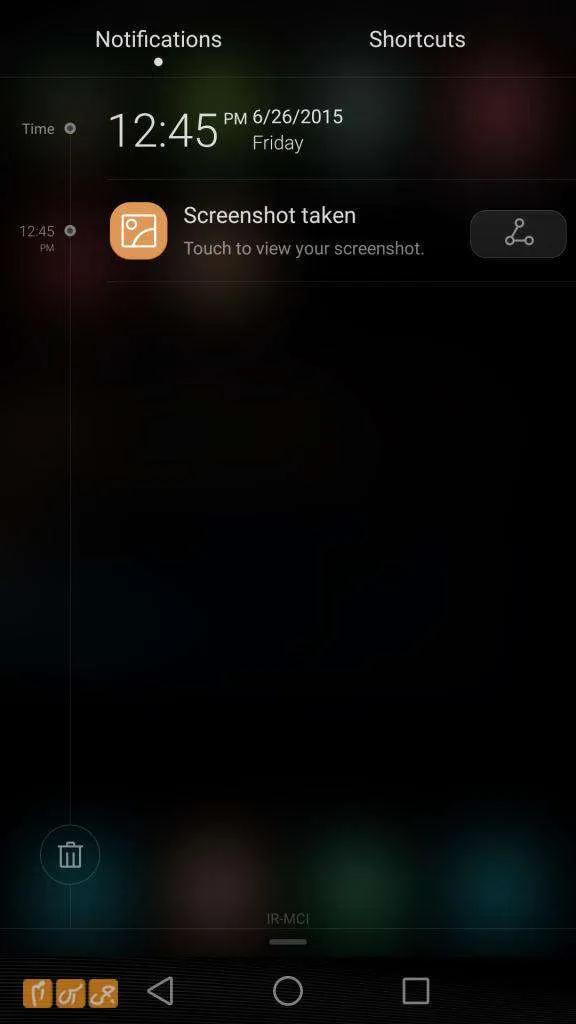 نوتفیکیشن‌بار یکی از قسمت‌های پرکاربرد در گوشی‌های اندرویدی است و با کشیدن انگشت از بالای صفحه به پایین می‌توان به آن دسترسی پیدا کرد. در P8 این قسمت دو تب دارد. در تب اول، که نوتیفیکیشن در صورت وجود به‌طور پیش‌فرض در این قسمت نمایش داده می‌شود، تمام نوتیفیکیشن‌ها را مشاهده می‌کنید. طراحی این قسمت را بسیار دوست داریم و طرحی ابتکاری از هوآوی است. در این قسمت جدولی مشاهده می‌کنید که نوتیفیکیشن شما در سمت راست آن و زمان مربوط به آن نوتیفیکیشن در سمت چپ نمایش داده می‌شود. در انتهای صفحه نیز آیکون سطل آشغال تعبیه شده که با یک بار ضربه زدن روی آن تمام نوتیفیکیشن‌ها پاک می‌شود. تب دوم، که میان‌برها نام دارد، برای دسترسی سریع به برخی تنظیمات است. هر چیزی که برای تنظیم سریع نیاز داشته باشید، در این قسمت دیده می‌شود.