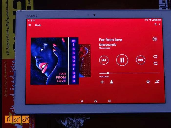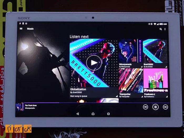 پخشکننده موزیک این تبلت پر است از امکانات جالب و جذاب. البته از سونی، که دستی بر آتش موزیک پلیرها دارد، جز این هم انتظار نداشتیم. پخشکننده موزیک در صفحهای که موزیک در حال پخش نمایش داده میشود کاور آلبوم را همراه با کلیدهای کنترلی نمایش میدهد. کلیدها اندازه بزرگ دارند و استفاده از آنها راحت است. درمجموع شاید کمتر پیش بیاید که با تبلت خود موزیک گوش دهید، اما اگر هم چنین کاری کنید، گوش کردن به موزیک با تبلت Z4 برایتان جذاب خواهد بود.