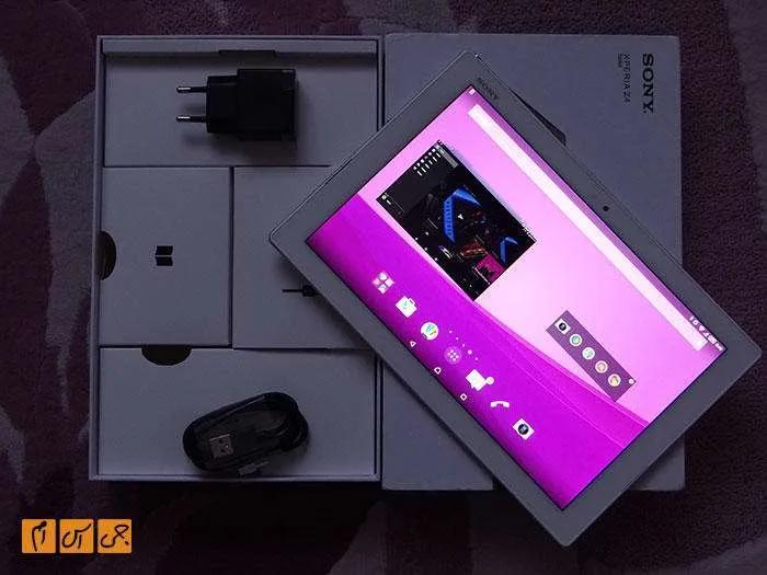 از جعبه یک تبلت نباید انتظار زیادی داشته باشید. در جعبه این تبلت نیز هر آن چیزی که نیاز دارید قرار گرفته است. تبلت Xperia Z4 Tablet دفترچه راهنما، کابل شارژ و دوشاخه برای اتصال به برق دارد. کمبود هدست در جعبه این تبلت به چشم میخورد، بهخصوص به این دلیل که هنگام مکالمه اگر دوست ندارید با اسپیکر آن صحبت کنید، باید از هدست استفاده کنید.