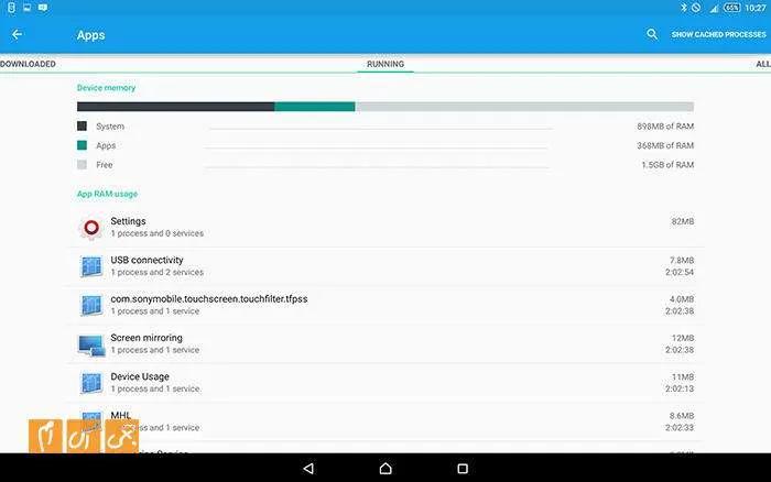 رم Z4 ظرفیت 3 گیگابایت دارد؛ در ابتدای کار، که تنها برنامههای پیشفرض روی تبلت نصباند، 1.5 گیگابایت از این حافظه رم در اختیار فایلهای سیستمی است و باقی فضا برای انجام دادن کارهای مولتی تسکینگ باقی میماند.