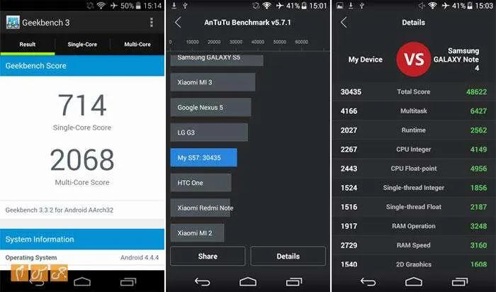 برای اینکه از قدرت دستگاه مطلع شویم، پردازنده آن را به دست بنچمارکهای Antutu و Geekbench 3 سپردیم. نتایج این تستها به ما نشان داد که اصلا با دستگاه کمقدرتی مواجه نیستیم. Liquid Jade Z ایسر توانست در این تستها امتیازی بالاتر از گلکسی اس4 سامسونگ به دست آورد که کاملا راضیکننده است.