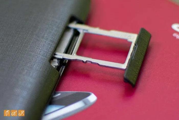 معمولا ما عادت داریم که در لبه سمت راست دکمه پاور را ببینیم، ولی در این گوشی پاور به لبه بالایی منتقل شده که کار خاموش و روشن کردن صفحه را سخت میکند. جک 3.5 میلیمتری صدا بالای دستگاه قرار گرفته و پورت microUSB، مثل همیشه، در لبه پایینی جا داده شده است. در لبه سمت راست جای دکمه پاور را دکمههای کم و زیاد کردن صدا گرفتهاند و سمت چپ محل قرار گرفتن سیمکارت و کارت حافظه است که، بهدلیل باز نشدن قاب پشت گوشی، از کنار به آن دسترسی داده شده است.