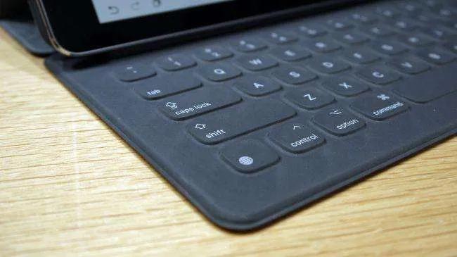 طبیعی است که وقتی از تبلت 12.9 اینچی صحبت به میان می آید، پای صفحه کلیدی فیزیکی نیز به بحث باز شود. این صفحه کلید، که از طریق اتصالدهنده هوشمند به آیپد پرو متصل میشود، به این محصول ظاهری مانند سرفیس میدهد؛ یعنی این محصول بیشازپیش شبیه مایکروسافت سرفیس پرو میشود.