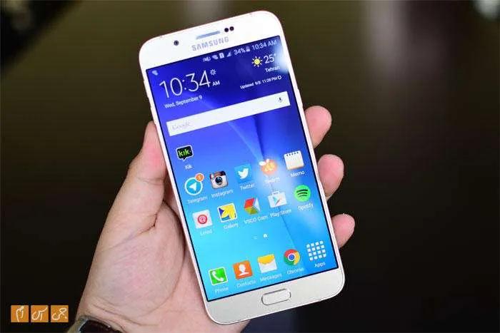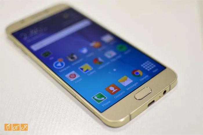این گوشی به صفحه نمایش ۵.۷ اینچی مجهز شده که از نظر اندازه با فبلت پرچمدار این شرکت، یعنی گلکسی نوت ۵، برابری میکند. اما این نمایشگر Super AMOLED رزولوشن تمام اچدی دارد و ۳۸۶ پیکسل را در هر اینچ خود گنجانده است. بگذارید در یک جمله نمایشگر A8 را خلاصه کنیم: این گوشی پرچمدار سامسونگ نیست، اما با وجود این صفحه نمایشی باکیفیت و فوقالعاده دارد. سامسونگ را بیشک میتوان استاد تولید صفحه نمایش Super AMOLED دانست، پس عجیب نیست که بهترین تکنولوژیهای این نوع صفحه نمایش را به گوشی خود آورده باشد.