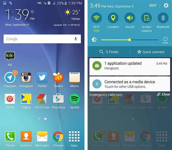 روی گلکسی A8 اندروید نسخه ۵.۱ نصب شده و روی این اندروید نیز رابط کاربری تاچ ویز قرار گرفته است. خوشبختانه در این گوشی آخرین نسخه تاچ ویز همراه با بسیاری از امکانات آن قرار دارد. جالب است بگوییم اول که دستگاه را روشن کردیم، احساس کردیم در حال کار کردن با گلکسی اس۶ هستیم! درحقیقت تمام قابلیتهای تاچ ویز، که در ای۸ قابل اجراست، در این گوشی وجود دارد.