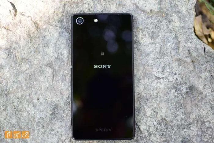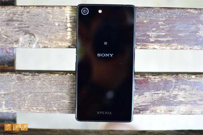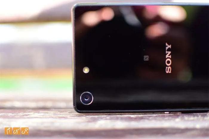 بخش پشتی، که از شیشه یکپارچه مشکی‌رنگ تشکیل شده، در بالای خود دوربین و تک فلاش LED را هم جای داده است. لوگوی NFC، برند سونی و در پایین‌ترین قسمت برند Xperia هم در قسمت پشتی ام۵ دیده می‌شود.