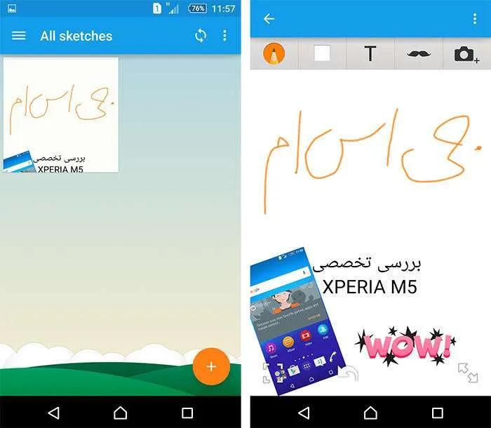 به‌جز این مورد، در گوشی اکسپریا ام۵ برخی اپلیکیشن‌های مخصوص سونی هم نصب شده است. برای مثال، یک اپلیکیشن Sketch در این گوشی وجود دارد که در این نرم‌افزار کاربر می‌تواند اثری مانند تصویر زیر خلق کند. البته قبول دارم چندان هنری نیست!