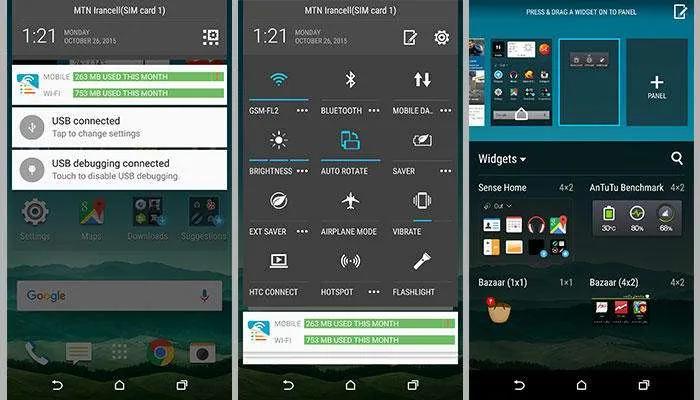 از سختافزار رد میشویم و سراغ کارایی محصول میرویم. ای9 پلاس برای برقراری ارتباط بین کاربر و سختافزار از اندروید 5.0.2 استفاده میکند. البته برای بهتر شدن حس کاربر هنگام استفاده از ای9 پلاس، اچتیسی از رابط کاربری معروف خود یعنی سنس (Sense) هم استفاده کرده است. در این محصول از نسخه هفتم رابط کاربری اچتیسی استفاده شده که بسیار روان اجرا میشود. یکی از نقاط قوت گوشیهای اچتیسی همین رابط کاربری سنس است که بسیار مناسب و زیبا طراحی شده. منوها بسیار زیبا و درعینحال ساده طراحی شدهاند تا کاربر در سریعترین زمان با ای9 پلاس اخت بگیرد و مشکلی در ناوبری نداشته باشد. درصورتی که علاقه دارید از جدیدترین نسخه اندروی یعنی اندروید 6.0 (مارشمالو) استفاده کنید، خوب است بدانید ای9 پلاس یکی از گوشیهای اچتیسی است که بهروزرسانی مارشمالو را دریافت میکند.