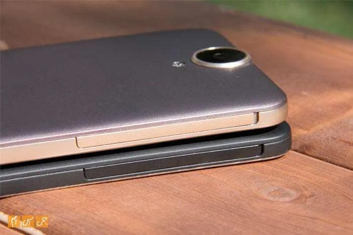 بالا و پایین گوشی بسیار ساده طراحی شده است. جک 3.5 میلیمتری بالای گوشی قرار گرفته تا هنگام گوش سپردن به موسیقی و کار با هدفون مشکلی پیش نیاید. درگاه میکرو یواسبی، که بهعنوان درگاهی برای شارژ کردن گوشی و برقراری ارتباط استفاده میشود، در قسمت پایینی گوشی قرار دارد. البته فریم پلاستیکی دور گوشی شکننده بهنظر میرسد و بهتر است هنگام استفاده از آن احتیاط کنید تا زیبایی ظاهر گوشی حفظ شود.