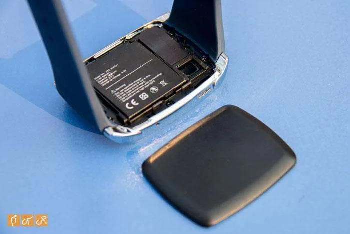 همانطور که در بخش محتویات جعبه اشاره کردیم، این ساعت از باتری 300 میلیآمپری آن هم از نوع موبایلی استفاده میکند. حضور باتری با این شکلوشمایل در نوع خود بسیار جالب است و این موضوع را میرساند که کاربر خودش میتواند برای تعویض باتری اقدام کند و نیازی به متخصص نیست. این باتری با کمک کابل میکرو یواسبی شارژ میشود و با یک بار شارژ میتواند شما را در طول روز همراهی کند، بدون نیاز مجدد به پریز برق. شارژ این باتری مدت زیادی طول نمیکشد و در کمتر از یک ساعت شارژ آن از صفر به صد درصد میرسد.