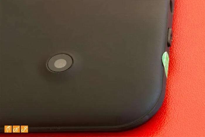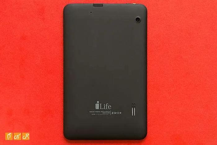 قسمت پشت دستگاه روکش پلاستیکی نرمی دارد و حس خوبی به شما خواهد بخشید، همچنین بافت آن به شکلی است که مانع لیز خوردن تبلت از دستان شما میشود. پشت دستگاه، علاوه بر دوربین اصلی، خروجی صدای اسپیکر و لوگوی آی-لایف دیده میشود.