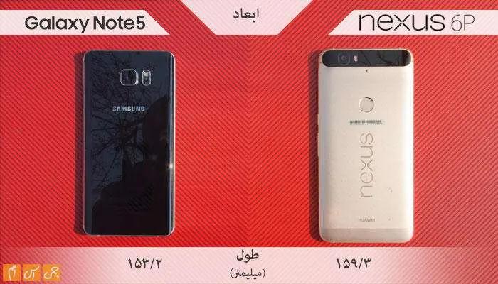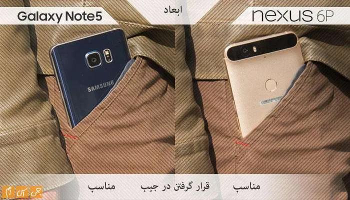 نوت 5 کوتاهتر از نکسوس 6پی است و این موضوع سبب میشود این گوشی راحتتر در جیب قرار بگیرد.