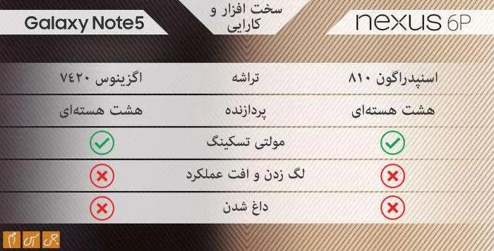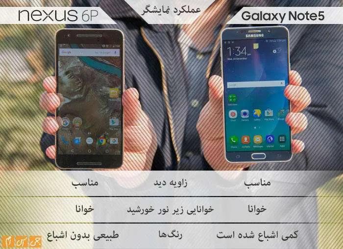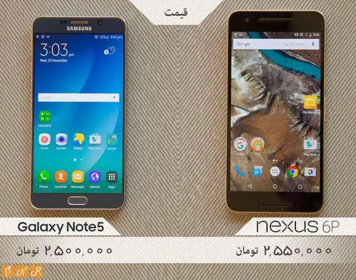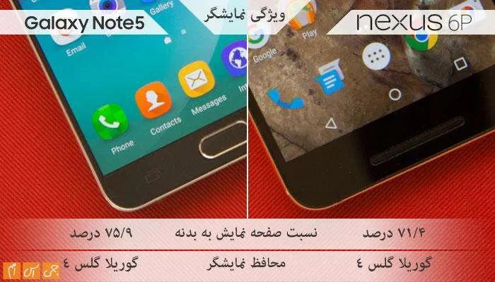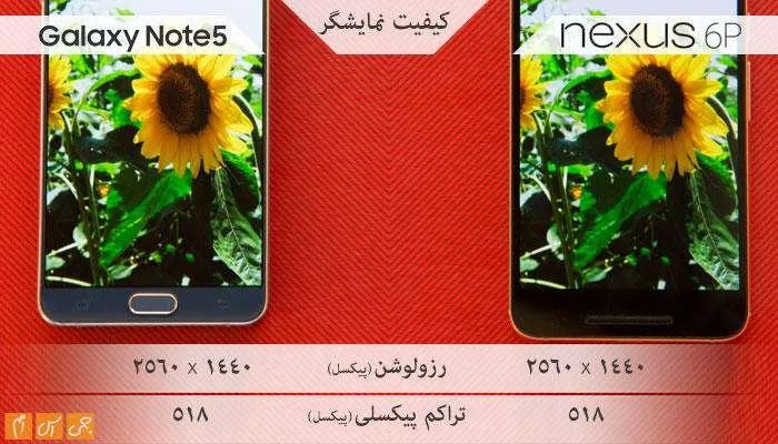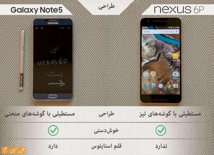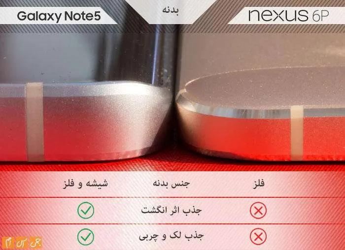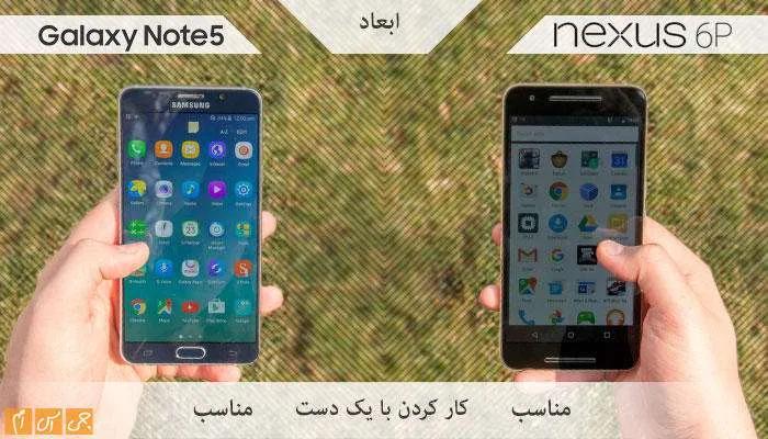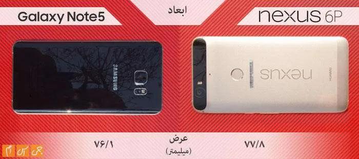 عرض دو محصول تفاوت چندانی ندارد. اگر واقعبینانه نگاه کنیم، باید بگوییم نوت 5 محصول جمعوجورتری نسبت به نکسوس 6پی است.