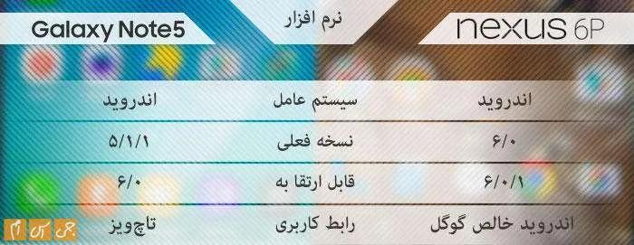 سامسونگ از رابط کاربری مخصوص خود برای نوت 5 استفاده میکند و نکسوس با اندروید خالص گوگل خودنمایی میکند و از رابط کاربری مخصوص هوآوی (اموشن) خبری نیست.