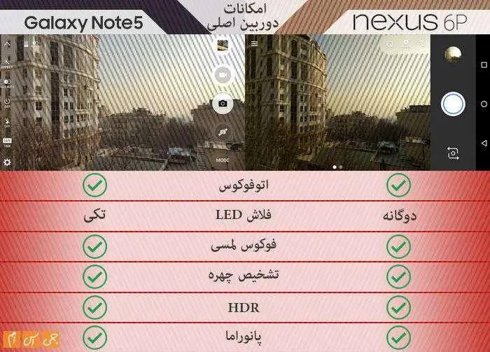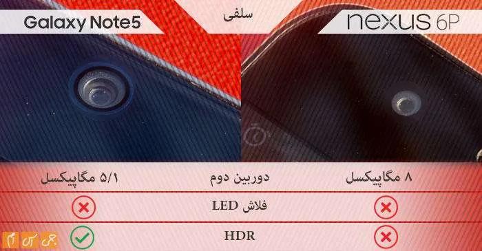 روی کاغذ دوربین سلفی نکسوس بهتر است، ولی در عمل تفاوت چندانی ندارند و هر دو محصول سلفیهای باکیفیتی به شما تحویل میدهند. البته نوت 5 با پشتیبانی از تکنولوژی HDR میتواند سلفیهای باکیفیتتری نیز ارائه کند.