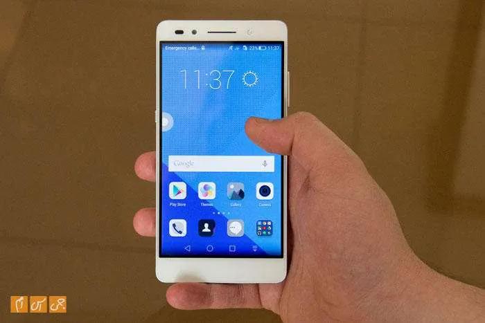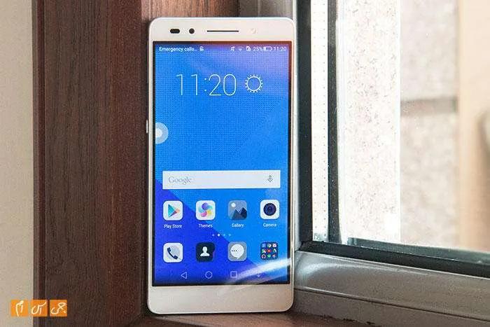 Honor 7 به صفحه نمایش 5.2 اینچی IPS-NEO با رزولوشن 1920×1080 پیکسل و تراکم پیکسلی 424 پیکسل در اینچ مجهز است. این صفحه نمایش حدود 72.4 درصد جلو گوشی را اشغال کرده است. صفحه نمایش IPS-NEO در مقایسه با مدل کلاسیک IPS کنتراست و وضوح تصویر بالاتری دارد و علاوه بر این باعث بهتر دیده شدن رنگها در زوایای دید محدود میشود. یکی از نکاتی که باید به آن اشاره کنیم میزان نور کم صفحه نمایش است و این موضوع باعث میشود در محیطهای باز خواندن صفحه نمایش کمی دشوار باشد. با دو بار ضربه زدن روی صفحه نمایش میتوانید آن را روشن کنید، دقیقا مانند آنچه در گوشیهای الجی به نام KnockOn شناخته میشود. این قابلیت بهطور پیشفرض غیرفعال است و برای فعال کردن آن باید به تنظیمات و قسمت Motion Control بروید و گزینه Double Touch را روشن کنید. در این منو تنظیمات دیگری مانند چرخاندن گوشی برای خاموش کردن زنگ و برداشتن گوشی برای کم کردن زنگ نیز موجود است.