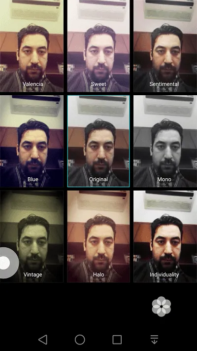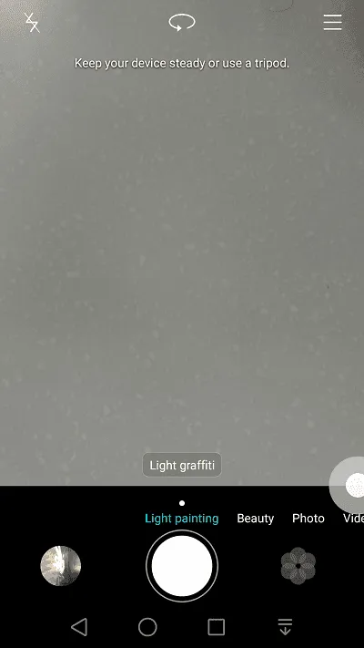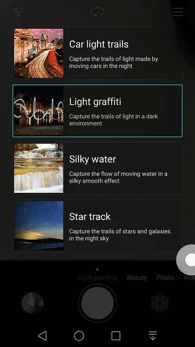 رابط کاربری دوربین بسیار ساده طراحی شده و شبیه دیگر گوشیهای اخیر این شرکت است. در حالت پیشفرض پنج گزینه پیش روی شماست. گزینههای اصلی حالت عکاسی و حالت فیلمبرداری هستند و باقی حالتها برای جلوههای تصویری و عکاسی از صحنههای بهخصوص است. بهعنوان نمونه، حالت Light Painting برای نقاشی با نور در شب مناسب است و در حالت Beauty میتوانید عکسهایی با رتوش بگیرید. برای عکاسی از غذا هم میتوانید گزینه Good Food را انتخاب کنید و درنهایتTime-laps چند عکس پشت سر هم از سوژه میگیرد و از این عکسها فیلم تهیه میشود.