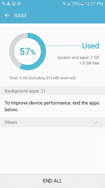 تصور ما این بود که، مانند S6، این گوشی فقط با پردازنده ساخت سامسونگ ارائه شود، اما عملا سامسونگ S7 را با دو مدل پردازنده به بازار معرفی کرد. مدل G930F، که در ایران موجود است، پردازنده 8 هستهای Exynos 8890 دارد. این پردازنده با 4 گیگابایت حافظه RAM و چیپست گرافیکی Mali-T880 میتواند از پس انجام دادن هر کاری بربیاید. نسخه ارائه شده با پردازنده Qualcomm Snapdragon 820 را تنها در برخی بازارها میتوان پیدا کرد. پردازنده اگزینوس سامسونگ امتحان خود را پس داده است و نیازی نیست در عملکرد آن شک کنید. این پردازنده از عهده اجرای بازیهای سنگین چون Asphalt 8 و Fifa16 نیز بهخوبی برمیآید؛ خصوصا اینکه هنگام کار با گوشی اصلا گرمایی حس نمیکنید. از 4 گیگابایت حافظه RAM حدود 1.4 گیگابایت آزاد است.