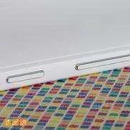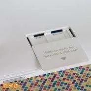 در پشت دستگاه یک نگهدارنده قرار گرفته است که نقش دسته را نیز برای حمل‌ونقل بر عهده دارد. جدا نشدن این نگهدارنده چیزی شبیه جوک است و باعث می‌شود که هیچ زمان نتوانید تبلت خود را به صورت کاملا خوابیده روی میز قرار دهید و تبلت همیشه با زاویه روی میز قرار می‌گیرد. علاوه بر این، جدا نشدن پایه باعث می‌شود که نتوانید آن را در کیف خود قرار دهید و باید فکر خارج کردنش را از خانه از ذهن خودتان خارج کنید. این نگهدارنده در دو جهت قرار می‌گیرد، زمانی که بخش بالایی آن به تبلت چسبیده باشد می‌توانید تبلت را به صورت ایستاده قرار دهید و زمانی که بخش پایینی آن به تبلت چسبیده باشد می‌توانید تبلت را به صورت خوابیده روی میز قرار دهید. بلندگوهای دستگاه نیز در پشت دستگاه و زیر این پایه نگهدارنده قرار دارند.