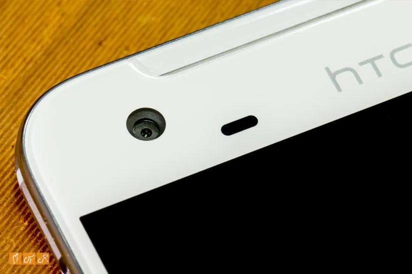 جلو آن صفحه‌نمایشی قرار دارد که حدود 71 درصد فضای قاب جلویی را به خودش اختصاص داده است. بالای این صفحه‌نمایش دوربین اصلی در سمت چپ و در کنار آن سنسور نور و سنسور مجاورت قرار گرفته‌اند. پایین صفحه‌نمایش، مانند قدیم‌ترها، می‌توانید سه کلید معروف Home، بازگشت به عقب و برنامه‌های اخیر را مشاهده کنید که اچ‌تی‌سی تصمیم گرفته این سه کلید لمسی را مانند گوشی‌های قدیمی‌اش از صفحه‌نمایش خارج کند و روی قاب قرارشان دهد. بالا و پایین صفحه‌نمایش اسپیکرهای دوتایی یا همان BoomSound اچ‌تی‌سی را می‌توان مشاهده کرد. اگرچه کارایی این اسپیکرها را بسیار دوست داریم، با طراحی بی‌دقت اچ‌تی‌سی در این اسپیکرها ظاهر قاب جلویی به‌شدت دچار ضعف شده است.