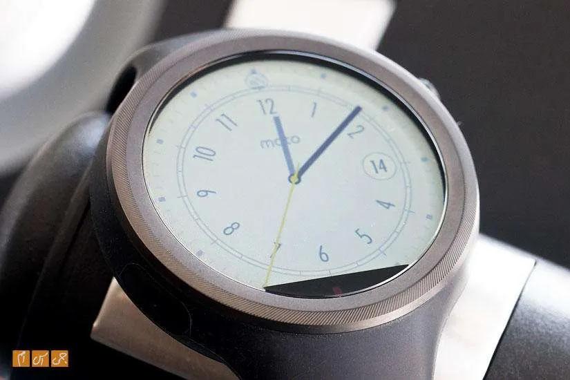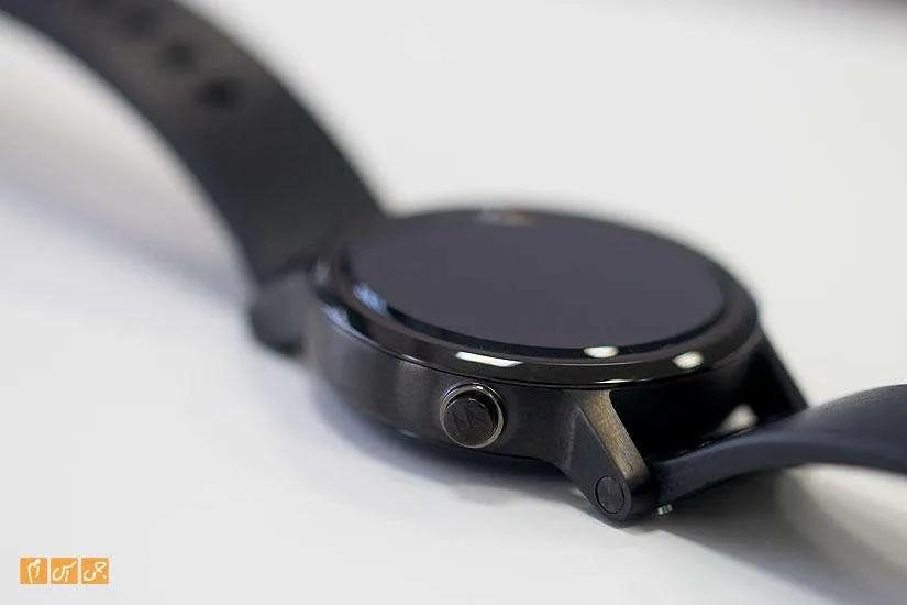 یکی از ایرادهایی که سال گذشته متوجه موتو 360 بود نوار سیاهی بود که پایین صفحهنمایش قرار داشت و صفحه را از حالت دایرهای خارج میکرد. متاسفانه امسال نیز این نوار حذف نشده و موتورولا برای اینکه بتواند سنسور نور را روی ساعت خود داشته باشد این نوار را نگه داشته است.