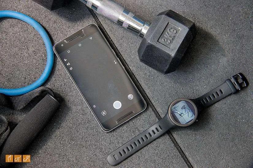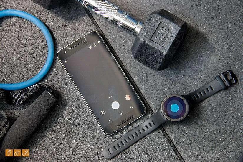 با فعال کردن دوربین روی گوشیای که به این ساعت متصل است نواری ظاهر میشود که میتوانید با لمس آن از راه دور با گوشی عکس بگیرید و بعد از گرفتن عکس پیشنمایش آن را روی ساعت مشاهده کنید.