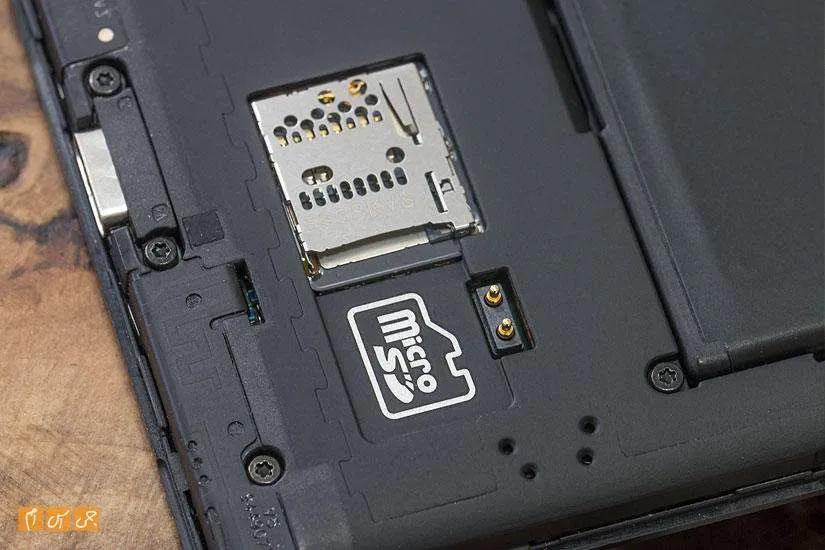 قاب پشتی دستگاه، که قابلیت جدا شدن دارد، علاوه بر بخش پشتی کنارههای دستگاه را تا صفحهنمایش میپوشاند. زمانی که این قاب را از جای خود خارج کنید، به باتری بزرگی دسترسی پیدا میکنید و برای قرار دادن سیمکارتها مجبورید باتری را از جای خود خارج کنید. نکته منفی این است که اگر قاب پشتی را جدا کنید، دیگر امکان استفاده از کلیدهای کنترلی کنارهها وجود ندارد، زیرا شاسیای که با آنها میتوانید این کلیدها را فشار دهید روی قاب قرار گرفته. جنس قاب از پلیکربنات است، اما آن پلیکربناتی نیست که درگوشیهای قدیمی لومیا دیده بودیم یا اگر از همان جنس هم باشد، لااقل آن حس را منتقل نمیکند. بااینحال هنوز هم لمس این پلی کربنات حس خوبی دارد و نکتهای منفی برای گوشی محسوب نمیشود.