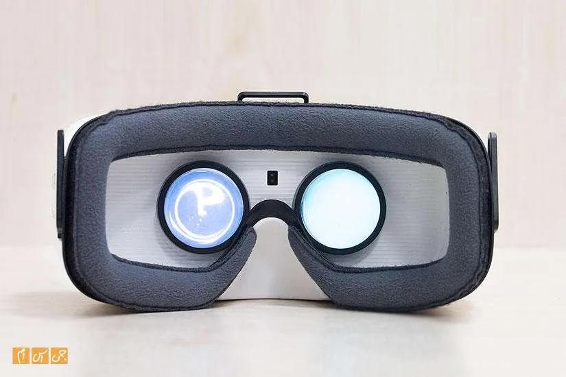 پنل مشکی رنگی به همراه هدست ارائه میشود که هنگام استفاده یا زمانی که از دستگاه استفاده نمیکنید برای محافظت از لنزها در بخش جلویی دستگاه نصب میشود. سامسونگ در کنار این پنل یک شیار هم طراحی کرده تا در صورت اتصال هدفون به دستگاه مانعی سر راه استفاده از آن وجود نداشته باشد. وزن دستگاه حدود 318 گرم است که با گوشیای که به آن متصل میشود حداقل 180 گرم به آن اضافه میشود. این وزن شاید برای در دست گرفتن محصول زیاد نباشد، اما اگر به مدت 90 دقیقه، که مدت زمان دیدن یک فیلم است، این وزن را روی گردن خود داشته باشید حتما خسته میشوید. ما بعد از 15 دقیقه استفاده از دستگاه واقعا خسته میشدیم و به عبارت بهتر حالت کلافگی به ما دست میداد. یکی از مزیتهای این هدست قابل استفاده بودن آن برای افرادی است که از عینکهای طبی استفاده میکنند، اگر شما هم از عینک طبی استفاده میکنید برای مشاهده محتوای این هدستها نیازی نیز عبنک خود را بردارید.