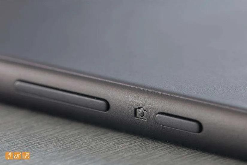 همان‌طور که گفتیم، به‌جای شیشه در قاب پشتی از فلز استفاده شده است. پوشش مات قاب پشتی باعث می‌شود لغزش گوشی در دست کمتر شود. در عوض اثر لکه به‌خوبی روی آن باقی می‌ماند.