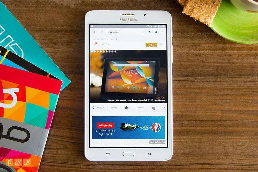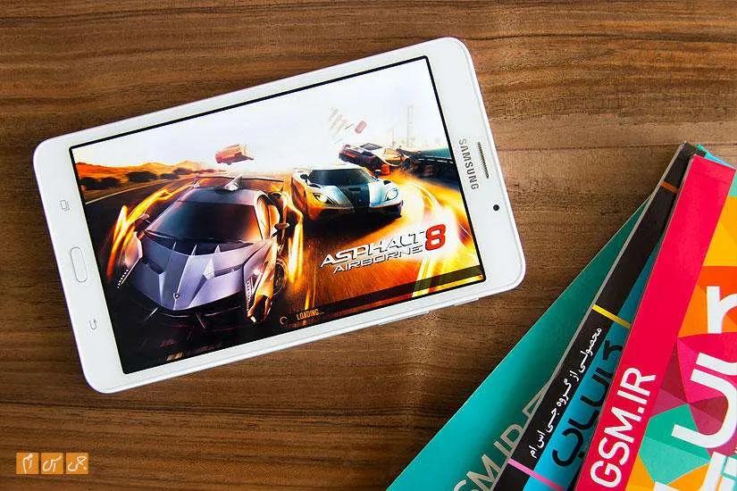 برخلاف گوشیهایش، سامسونگ از صفحهنمایش آمولد در این تبلت استفاده نکرده و صفحهنمایشی از جنس IPS با کیفیت HD را به خدمت گرفته است. این صفحهنمایش تراکم پیکسلی 216 پیکسل در اینچ دارد و اگر از فاصله نزدیک به آن نگاه کنید، بهراحتی میتوانید پیکسلها را در آن مشاهده کنید.