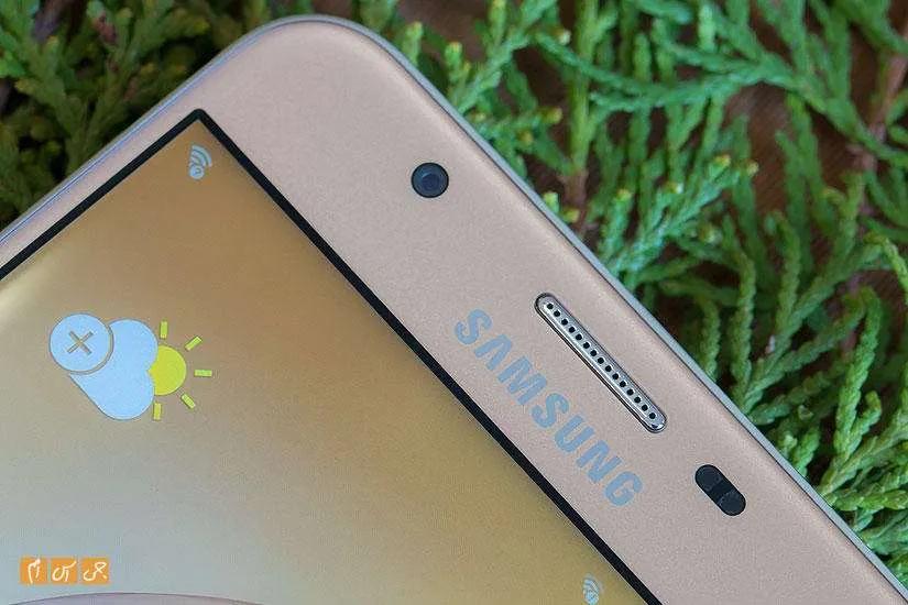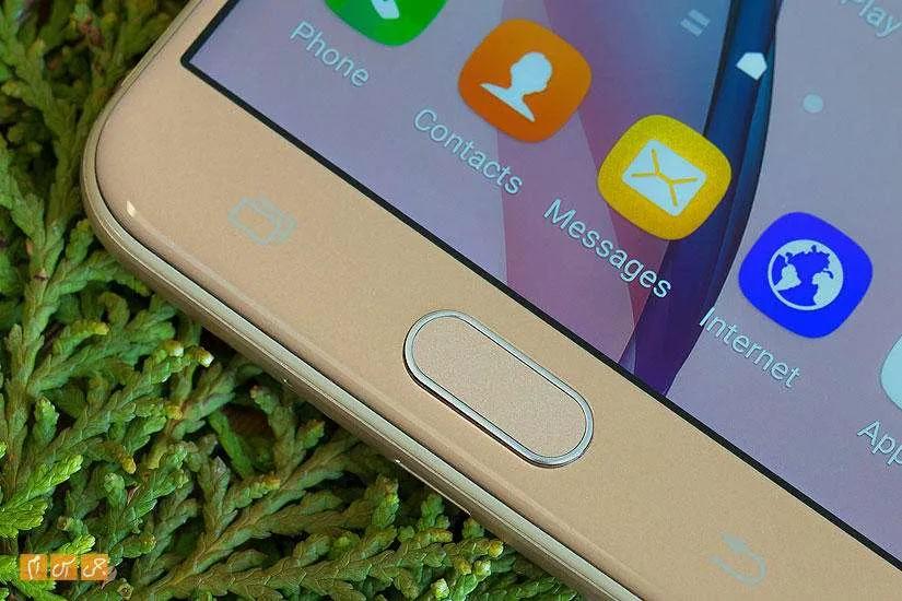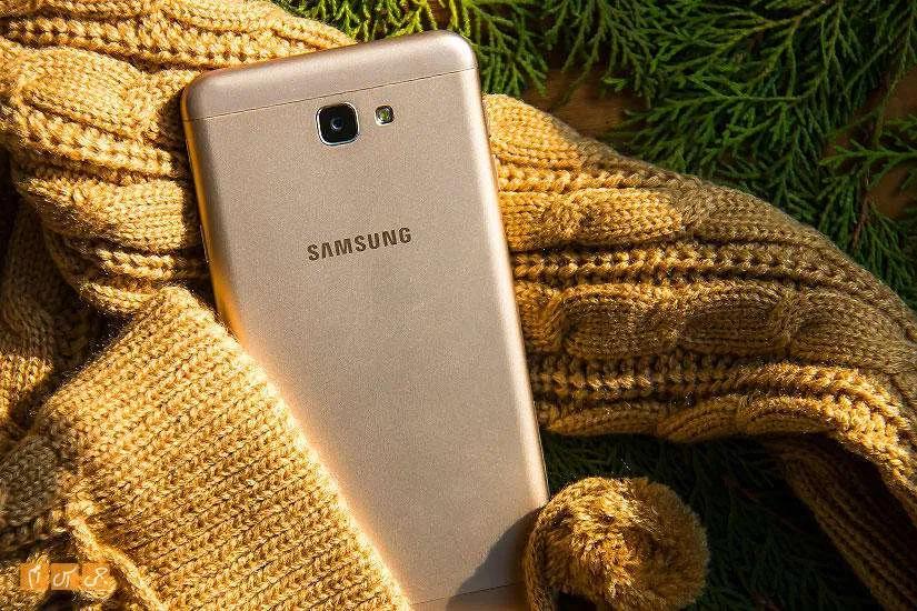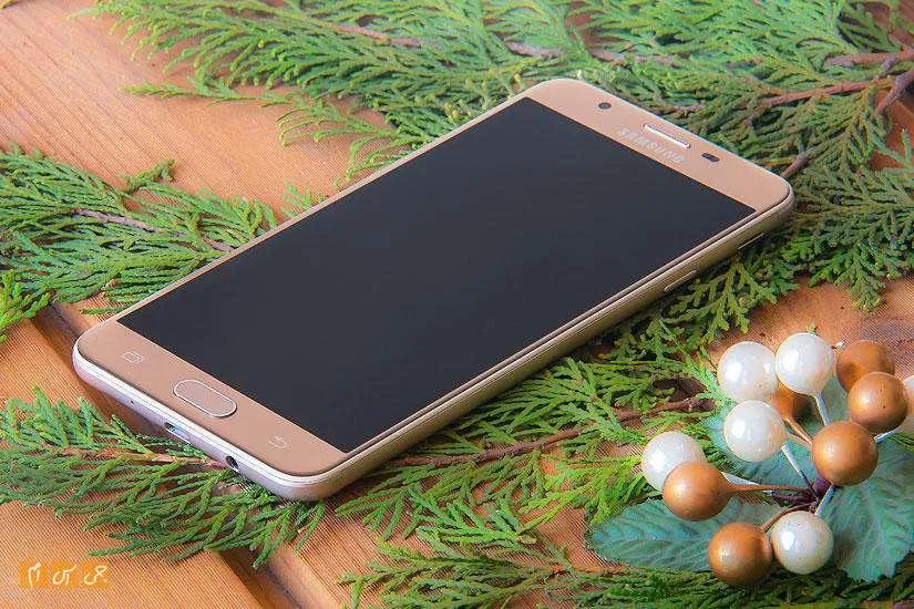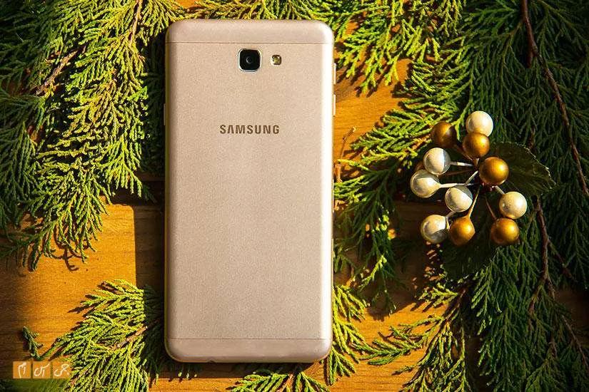 طراحی J7 Prime به J7 (2016) شباهت بسیار دارد. بخش جلو گوشی شامل صفحه نمایش 5.5 اینچی است که از شیشه 2.5D ساخته شده و سه کلید معروف سامسونگ در زیر آن قرار دارند. کلیدها نور پسزمینه ندارند و در تاریکی کار با آنها کمی مشکل است. کلید Home مانند پرچم داران این شرکت مجهز به سنسور اثر انگشت است و با دو بار فشار دادن آن دوربین بهسرعت آماده عکاسی میشود. برای باز شدن صفحه نمایش نیازی به فشردن کلید Home نیست و فقط کافی است انگشتتان را روی حسگر شناسایی اثر انگشت قرار دهید. بعد از شناسایی انگشت بلافاصله گوشی باز میشود. این حسگر سرعت شناسایی بالایی دارد، اما برخی مواقع انگشت را شناسایی نمیکند و باید انگشتتان را خیلی دقیق روی آن بگذارید. در طول بررسی این مشکل 4 بار برای ما پیش آمد. بالای صفحه نمایش دوربین دوم، خروجی صدای مخاطب و حسگر مجاورت قرار گرفته و، برخلاف J7 (2016)، فلاش برای دوربین دوم وجود ندارد.