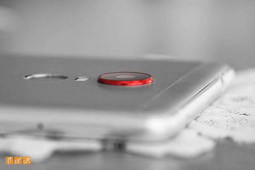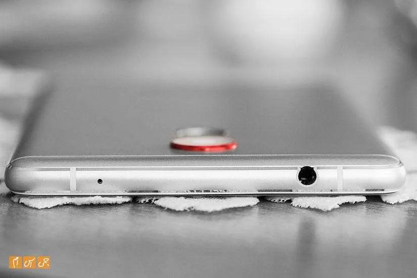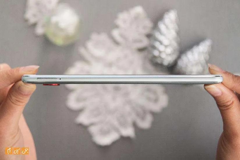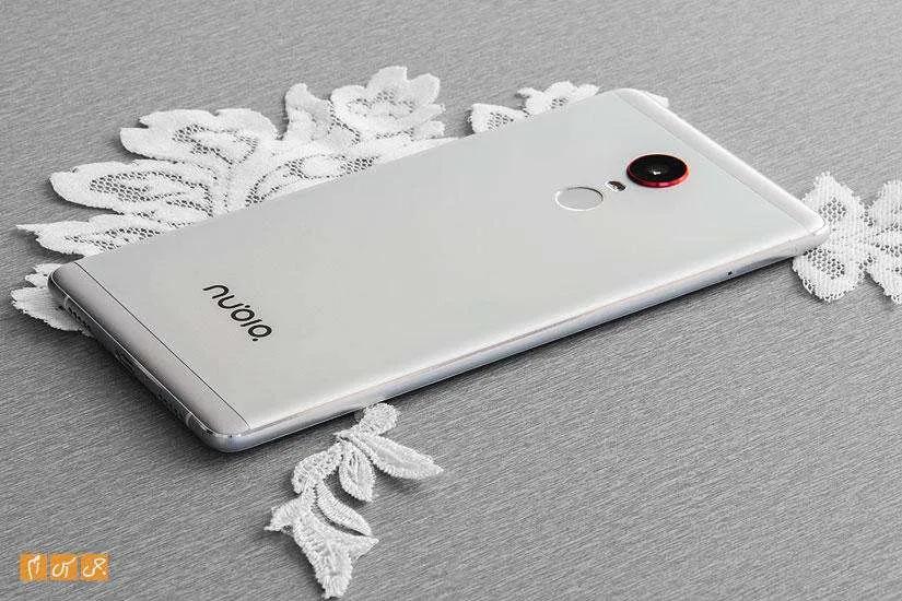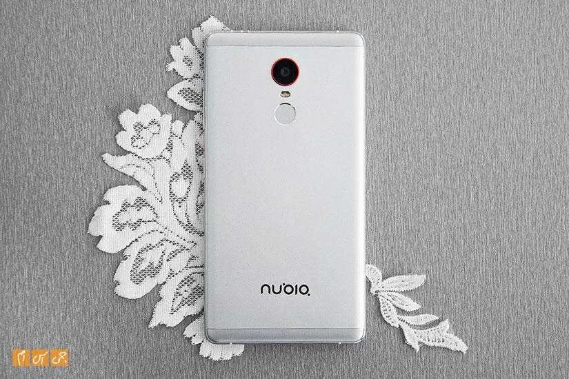 همانطور که گفتیم، پشت گوشی شبیه میت هوآوی است. لنز دوربین، فلاش و سنسور اثرانگشت در قسمت بالا و لوگوی نوبیا در پایین قاب دیده میشود و هیچ نوشتهای از برند سازنده به چشم نمیخورد. لنز دوربین با نوار زرشکی رنگی تزئین شده، اما بیرونزدگی آن کمی زیاد است و هنگام قرارگیری روی سطح صاف ممکن است آسیب ببیند. قاب پشتی و فریم یک تکه نیستند و لبههای تیز فریم کناری کاملا با دست برخورد میکند و حس خوبی به کاربر نمیدهد. در قسمت بالا و پایین قاب پشتی هم، برای جلوگیری از افت آنتن، پلاستیک کار شده است.