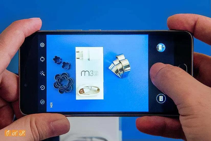 میزو از سنسور 13 مگاپیکسلی برای دوربین این گوشی استفاده کرده است. سرعت بالا آمدن و آماده به کار شدن این دوربین خیلی خوب نیست و حدود 2 ثانیه طول میکشد تا دوربین آماده به کار شود. منوی دوربین بسیار ساده طراحی شده است. بالای منو پنج آیکون دیده میشود. اولین آنها برای روشن و خاموش کردن فلاش به کار میرود. آیکون بعدی تایمر است و آیکون بعدی فیلترها را نشان میدهد. با آیکون چهارم بین دوربین اول و دوم جابجا میشوید و درنهایت آیکون آخر برای رفتن به تنظیمات است. پایین این منو سه گزینه دیگر میبینید: آیکون اول آخرین عکس را نشان میدهد، آیکون دوم شاتر است و آیکون آخر میانبری سریع برای سوییچ کردن به چند حالت مختلف است.
