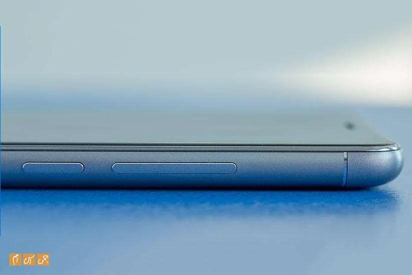 لبه سمت راست میزبان کلید ولوم و پاور است. کلیدهای ولوم به هم چسبیدهاند. بالای گوشی هم سوکت جک 3.5 میلیمتری صدا دیده میشود. پایین گوشی اسپیکر در کنار میکروفون اصلی و درگاه ارتباطی، از نوع میکرو یواسبی، در نظر گرفته شده است. لبه سمت چپ هم درگاه سیمکارت را مشاهده میکنید.