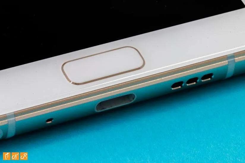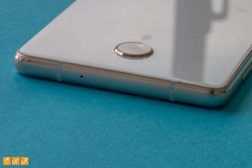 زیر صفحهنمایش کلیدی لمسی قرار دارد که در نگاه اول تصور میکنید فیزیکی است و قابلیت فشار دادن دارد اما با لمس آن متوجه میشوید که خبری از فشردن نیست و تنها از لمس پشتیبانی میکند. این کلید در سنسور اثرانگشت گوشی است که کارهای دیگری ازجمله بازگشت به عقب، باز کردن لیست برنامههای اخیر و خارج شدن از برنامهها و بازیها را به عهده دارد. برای تعریف اثرانگشت روی این سنسور خیلی باید تلاش کنید و در حدود 20 بار انگشت را روی آن بگذارید تا شناسایی کامل شود. بعد از تعریف بدون هیچ معطلی با لمس انگشت قفل گوشی باز میشود.