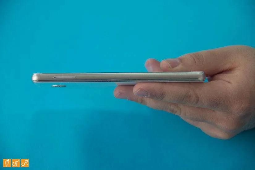 ازنظر ابعاد وزن همهچیز خوب است. ضخامت دستگاه تنها 7.7 میلیمتر است وزنی برابر 160 گرم دارد. به لطف حاشیههای بسیار کم صفحهنمایش، شاسی دستگاه بزرگ نیست و کمتر گوشی 5.5 اینچیای در بازار است که اندازهای به این مناسبی داشته باشد.